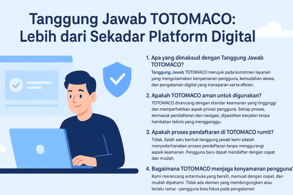 Kami percaya, membangun kepercayaan dimulai dari menghormati waktu dan perhatian pengguna. Tanggung Jawab TOTOMACO bukan sekadar janji, tapi praktik harian yang terus diperbaiki demi menjaga integritas layanan di tengah dunia digital yang makin padat.